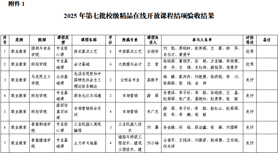 附件1:2025年第七批校级精品在线开放课程结项验收结果