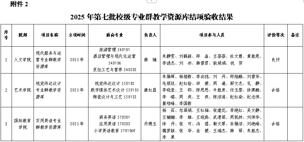 附件2:2025年第七批校级专业群教学资源库结项验收结果